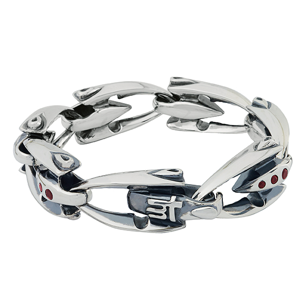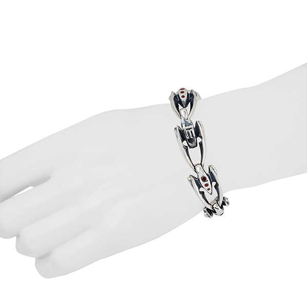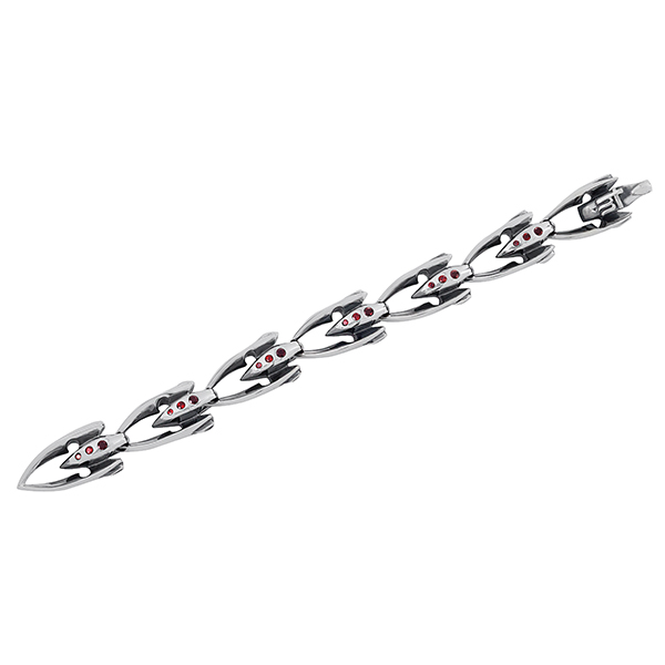 M=(poignet)ø 16-17.5cm. Autre taille: contact@soulfetish.com La ligne est futuriste presque aérodynamique. Les éléments rehaussés de pierres fines s'imbriquent parfaitement et rendent le bracelet très souple et confortable.