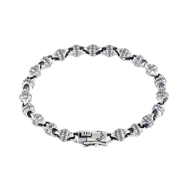 S=(wrist)ø14-15.5cm / M=ø16-17.5cm / L=ø18-19.5cm. Other size: contact@soulfetish.com. Link bracelet adorned with fine Maltese cross. Secure bayonet clasp.