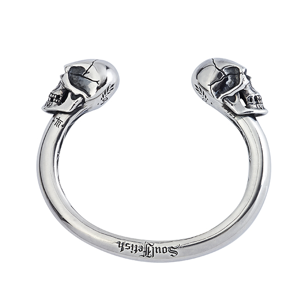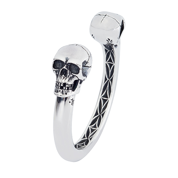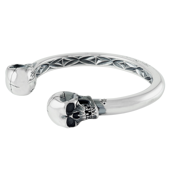 M=(wrist)ø16-17.5cm / L=ø18-19.5cm. A bold bangle adorned with imposing skulls, specially designed for the fans of the genre.