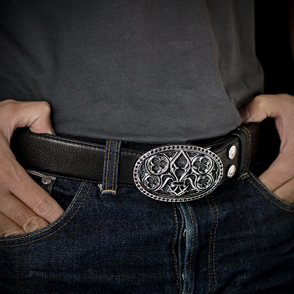 Gothic chic buckle inspired by gothic pattern from french medieval church. Available in sterling silver and leather belt. Sold with 38" fix size leather belt. Other size: contact@soulfetish.com.