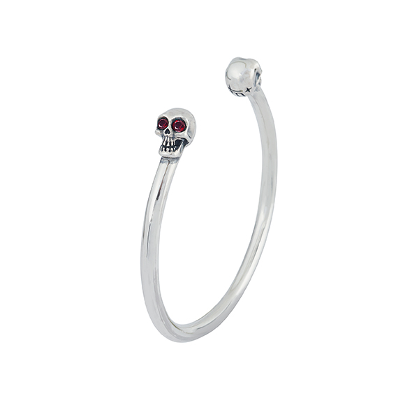 M=(wrist)ø16-19.5cm. Biker style unisex bangle with stones in skulls eyes.