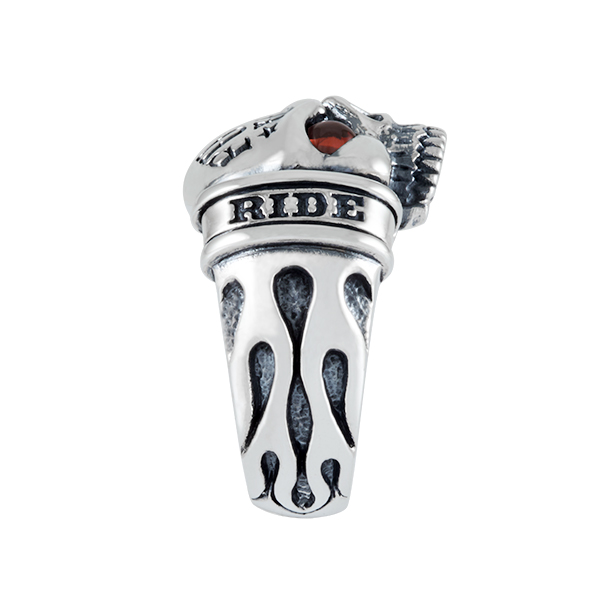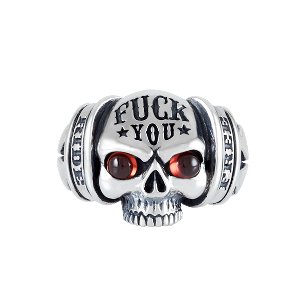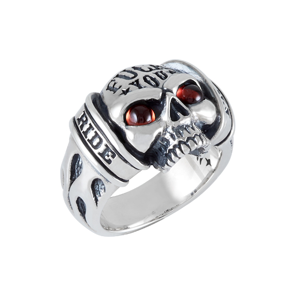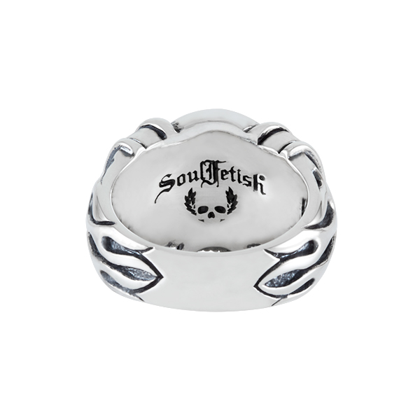 Skull and flames ring with very strong personality.