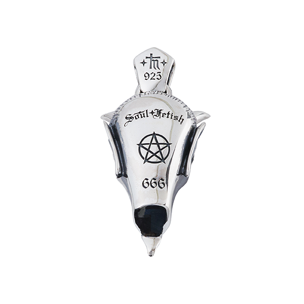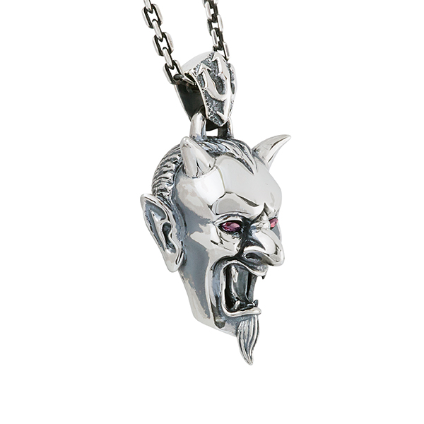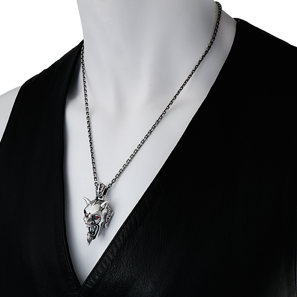 A combination of Italian influences and cinematic inspiration gives life to this magnificent, devil-horned creature. This pendant is a must have and is undeniably a triumph within the collection. A secret pentagram can be found engraved on the inside face of the jewel.