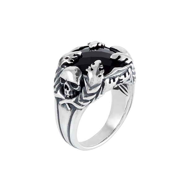 Medium version of the Beauté ring designed by Thierry Martino. This ring acts as homage to the alchemical beauty, which must embellish our actions. Placed above a column, a skull and laurel wreath frame this magnificent hand-cut jewel.