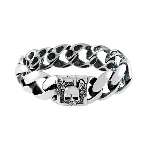 Gourmette classique avec un fermoir orné du crâne à laurier emblème de la marque SoulFetish. Le fermoir posséde une double sécurite.