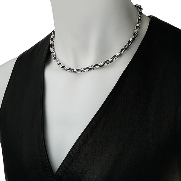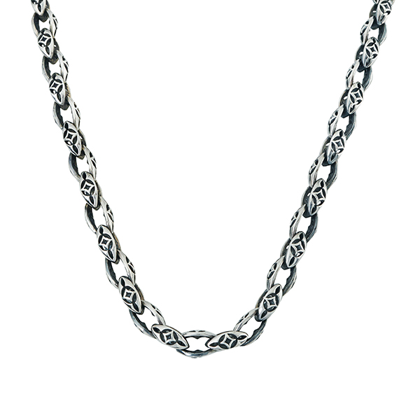 Fin collier avec des maillons aux motifs gothique délicats.