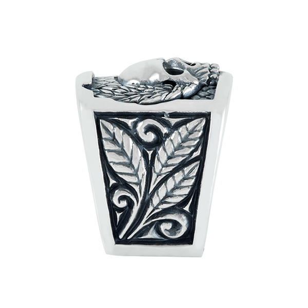 Bague a cigare pour les amateurs de Havane. Les cotés sont ornées de feuilles de tabac , le dessous est plat pour servir de support.