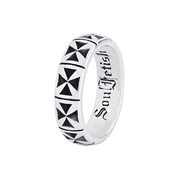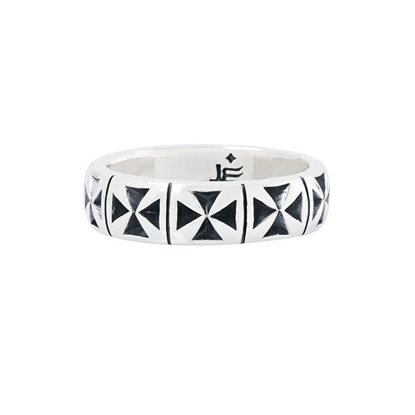 Anneau simple de taille moyenne gravé d'une frise de croix templiere . Un must have!