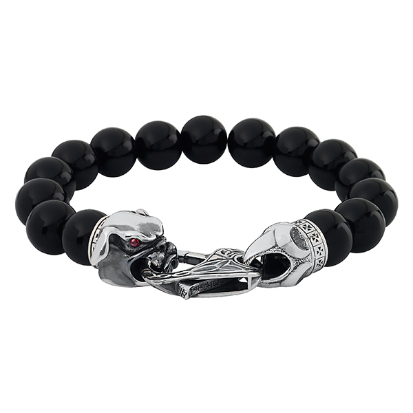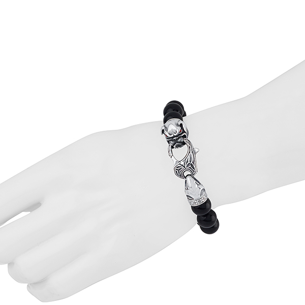 L=(poignet)ø18-19.5cm / XL=ø20-21.5cm. Autre taille: contact@soulfetish.com Bracelet de pierres fines, fermeture très bien gardée par le bulldog de SoulFetish au regard très énervé.