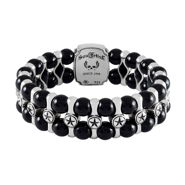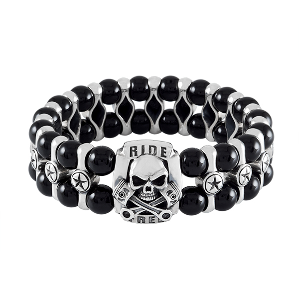 Crane,pistons,etoiles sont les nombreux symboles qui ornent ce bracelet perle elastique double rang RideFree.