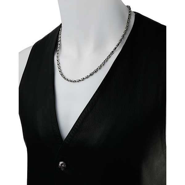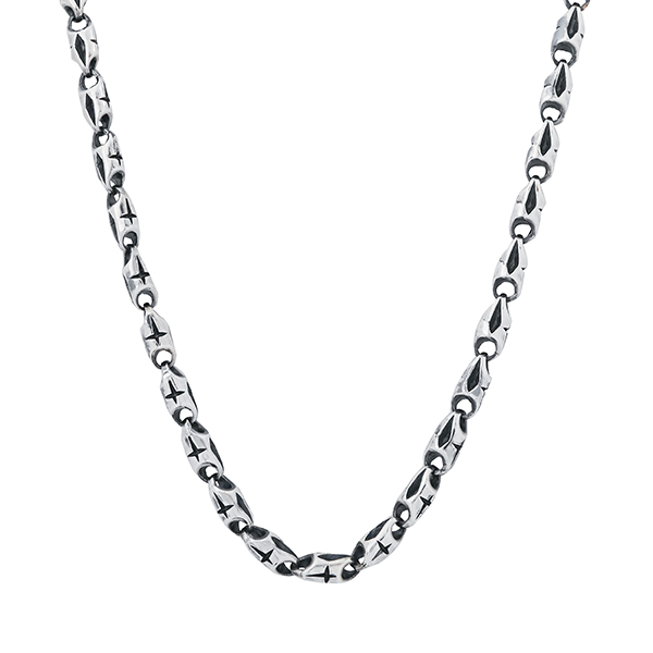 Chaîne de biker en argent aux maillons incrustés de croix.