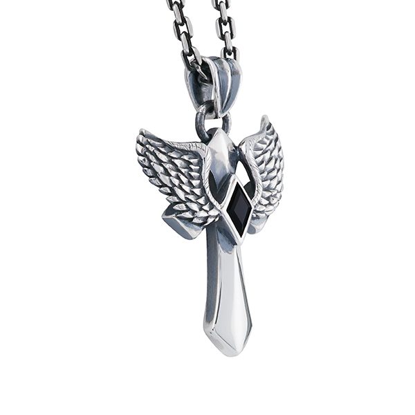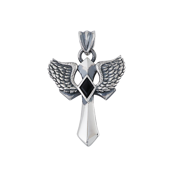 Pendentif symbole de liberté serti d'une pierre fine au centre.