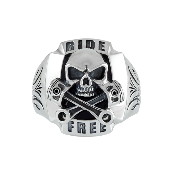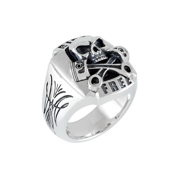 Biker ring skull,pistons, pinstrip , what else? Ride free forever.