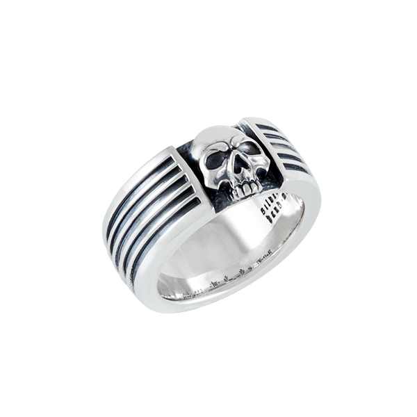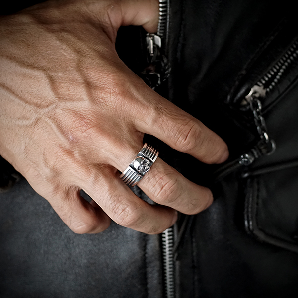 Anneau simple et massif au look moderne et crâne au centre.