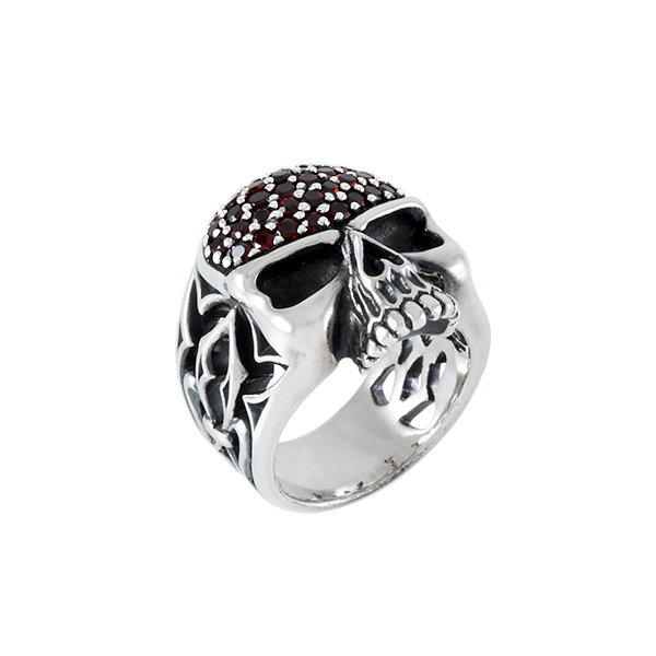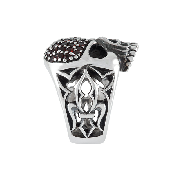 Un standard de la bijouterie Rock'n Chic revisite par Thierry Martino. Des courbes elegantes, un regard, qui sous un pave de pierres, semble percer le secret des ames. Les cotes sont ajoures par un motif gothique delicat et d'une fleur de lys