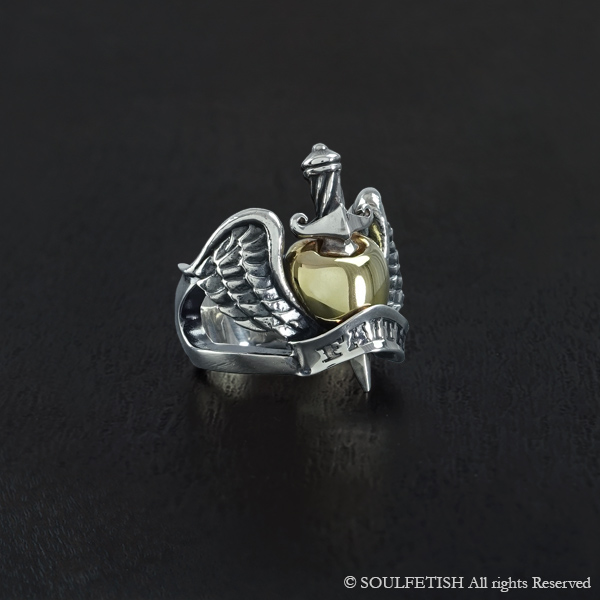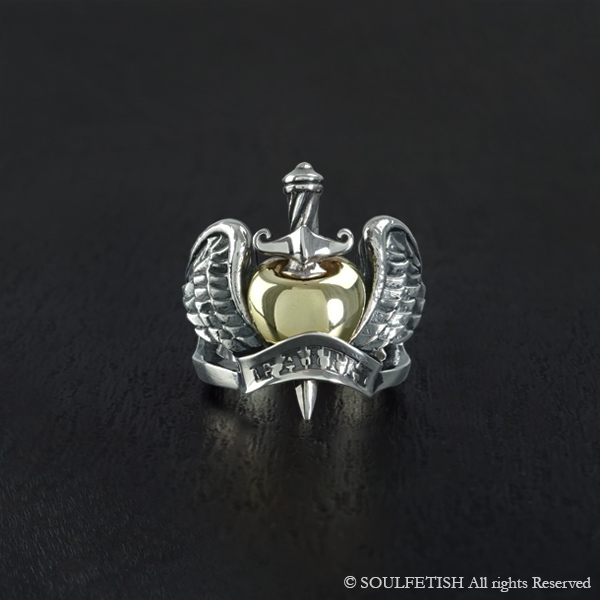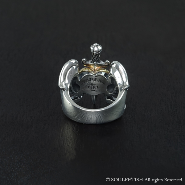 Sublime bague en argent au coeur plaqué or traversé d'un poignard. Un modèle phare de la collection Lust.