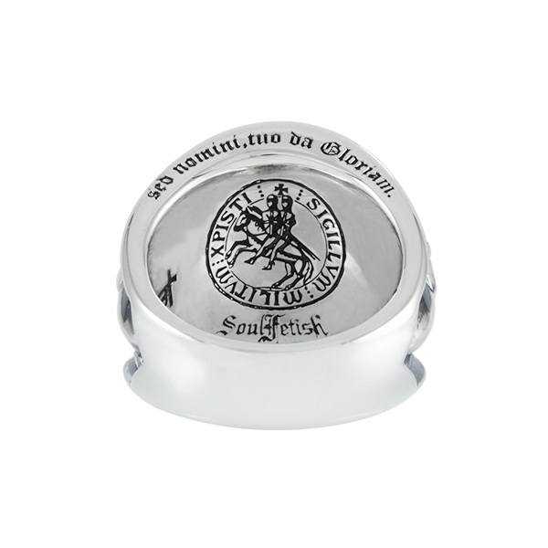 L'ordre du Temple était un ordre religieux et militaire issu de la chevalerie chrétienne du Moyen Âge, dont les membres étaient appelés les Templiers. Leur dernier grand Maitre était Jacques de Molay. Cette bague leur est dédiée.
